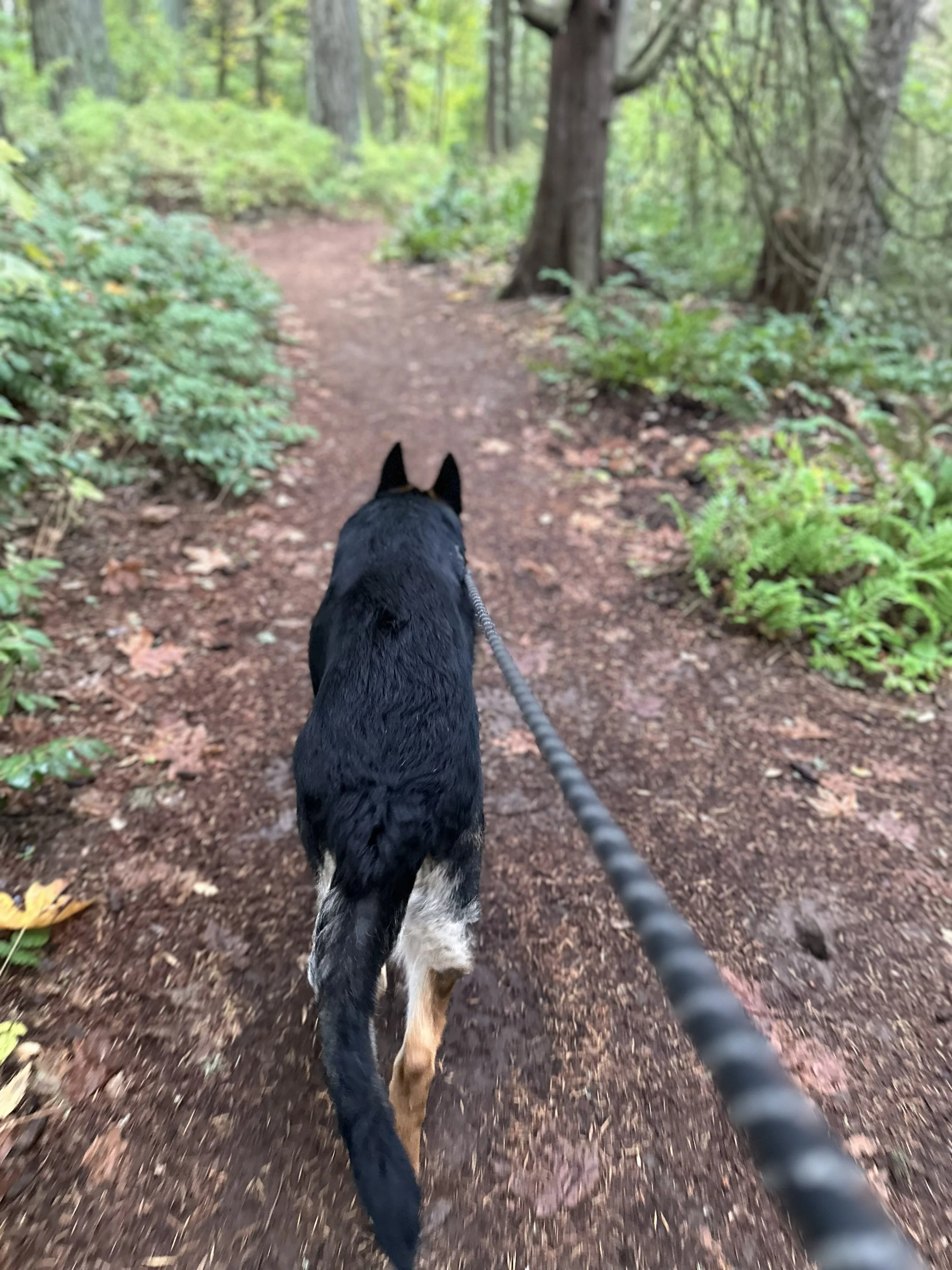 Your dog is taken out on a meandering walk. The point of this walk is to get your dog out of the house, in the open air, and hopefully do their bathroom business.